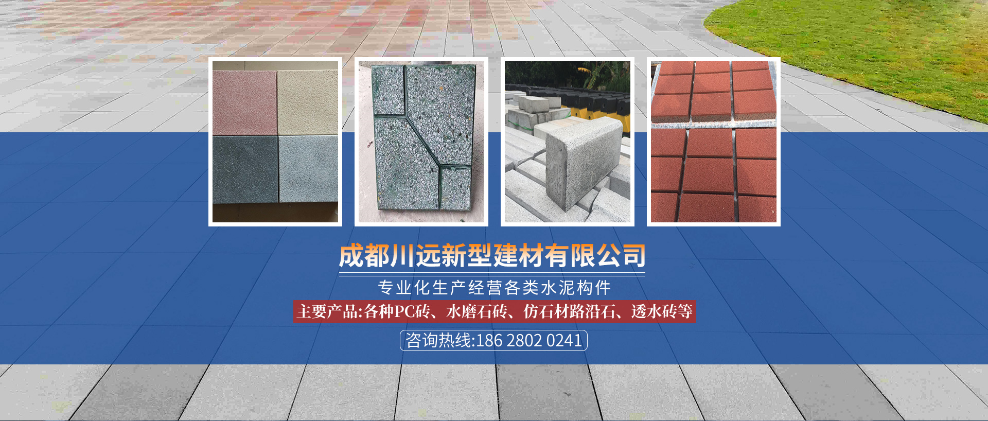 成都川遠(yuǎn)新型建材有限公司是一家專業(yè)化生產(chǎn)經(jīng)營(yíng)透水磚、pc磚定制,仿石材路沿石、水磨石磚的企業(yè)。擁有了面積達(dá)1000多平方的生產(chǎn)基地,多套完整的大、中型生產(chǎn)設(shè)備和眾多專業(yè)生產(chǎn)技術(shù)人員。本廠生產(chǎn)的各種型號(hào)等...